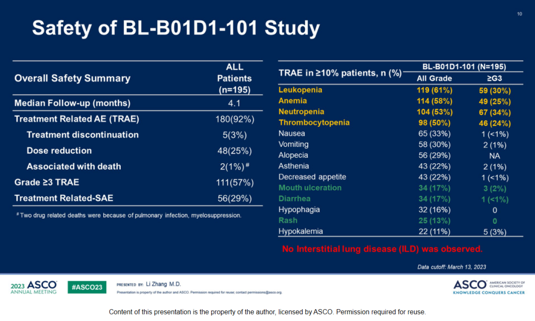 BL-B01D1是全球第一款投入臨床試驗的雙靶點ADC藥物,此次研究結果表現出對EGFR突變的NSCLC和NPC較高的安全性和抗腫瘤活性,雙靶點ADC的設計也將擴大實體瘤治療範圍;BL-B01D1尤其對EGFR突變治療以及EGFR-TKI耐藥展現出巨大潛力,在未來也是值得探索的方向。
