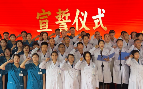 圖為“慢病康複社區行”公益項目啟動時,醫務人員宣誓場景。孫國根攝