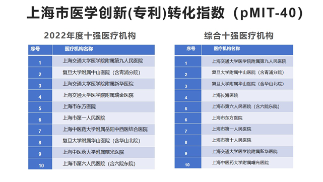 為以產醫融合促進臨床藥械研發轉化,在上海市醫學會醫學科研管理專科分會等主辦,複旦大學附屬華東醫院等承辦的“產醫融合促進臨床藥械研發轉化,管理創新引領醫院高質量發展”為主題的聯合年會上,發布《2022年度醫療機構醫學創新(專利)轉化指數》,上海交通大學醫學院附屬第九人民醫院、複旦大學附屬中山醫院等分別榮獲上海市醫學創新(專利)轉化“2022年度十強醫療機構”或“綜合十強醫療機構”稱號。