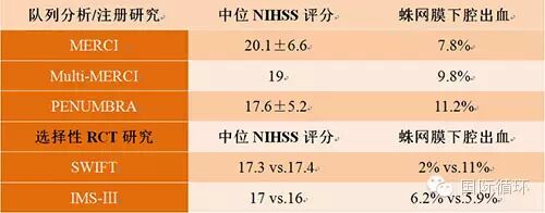 適合血管內治療的患者通常病情較重,通常存在近端血管閉塞和更多嚴重事件。患者自然病程可能包括高病死率、預後轉歸概率小、症狀性出血風險更高。因此多項研究對未能控製病情的患者死亡率和預後進行分析(表2)。