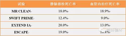 表3. 新公布研究患者靜脈溶栓和血管內治療死亡率