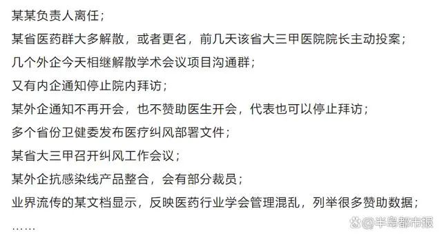 還有幾家外企解散學術會議項目溝通群,有一家企業還通知不再開會,也不讚助醫生開會,代表也可以停止拜訪。
